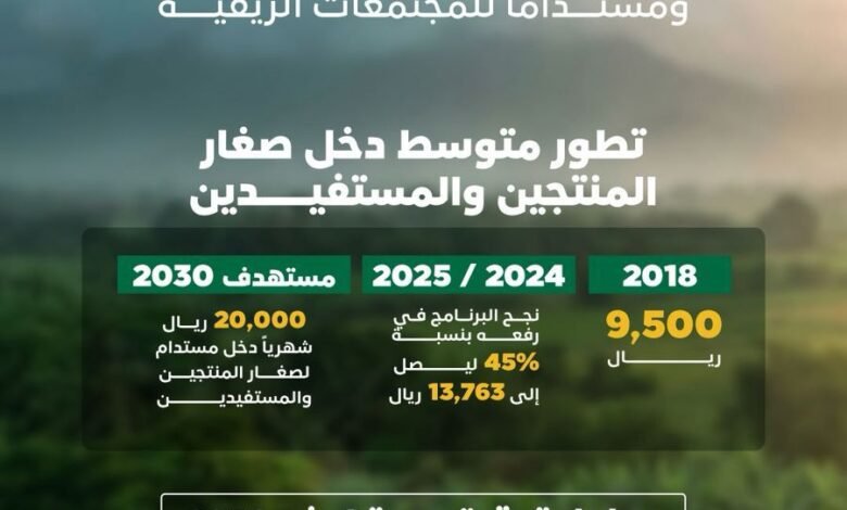 “ريف السعودية”: ارتفاع متوسط الدخل السنوي لصغار المزارعين والمنتجين الريفيين إلى أكثر من 240 ألف ريال بحلول 2030م